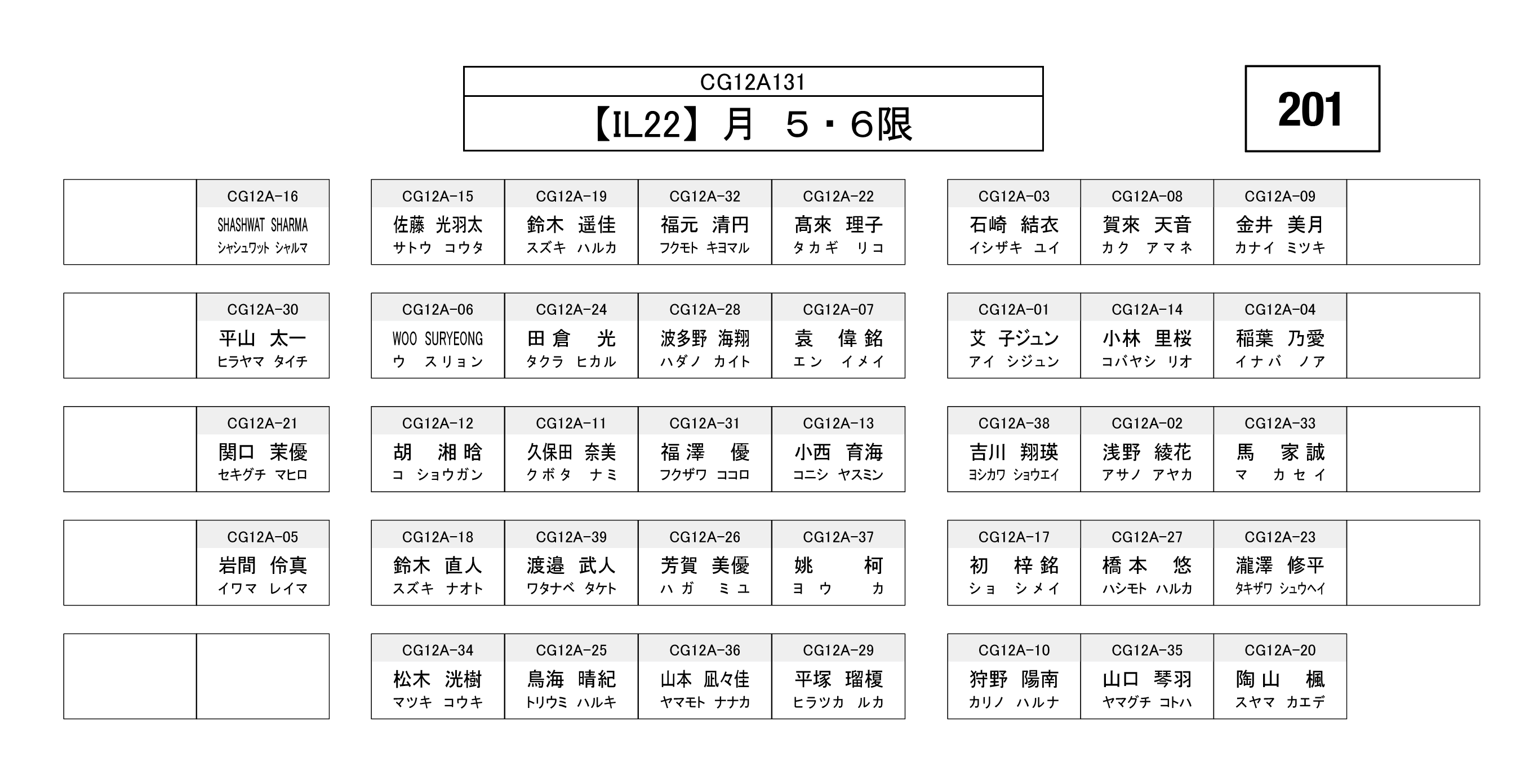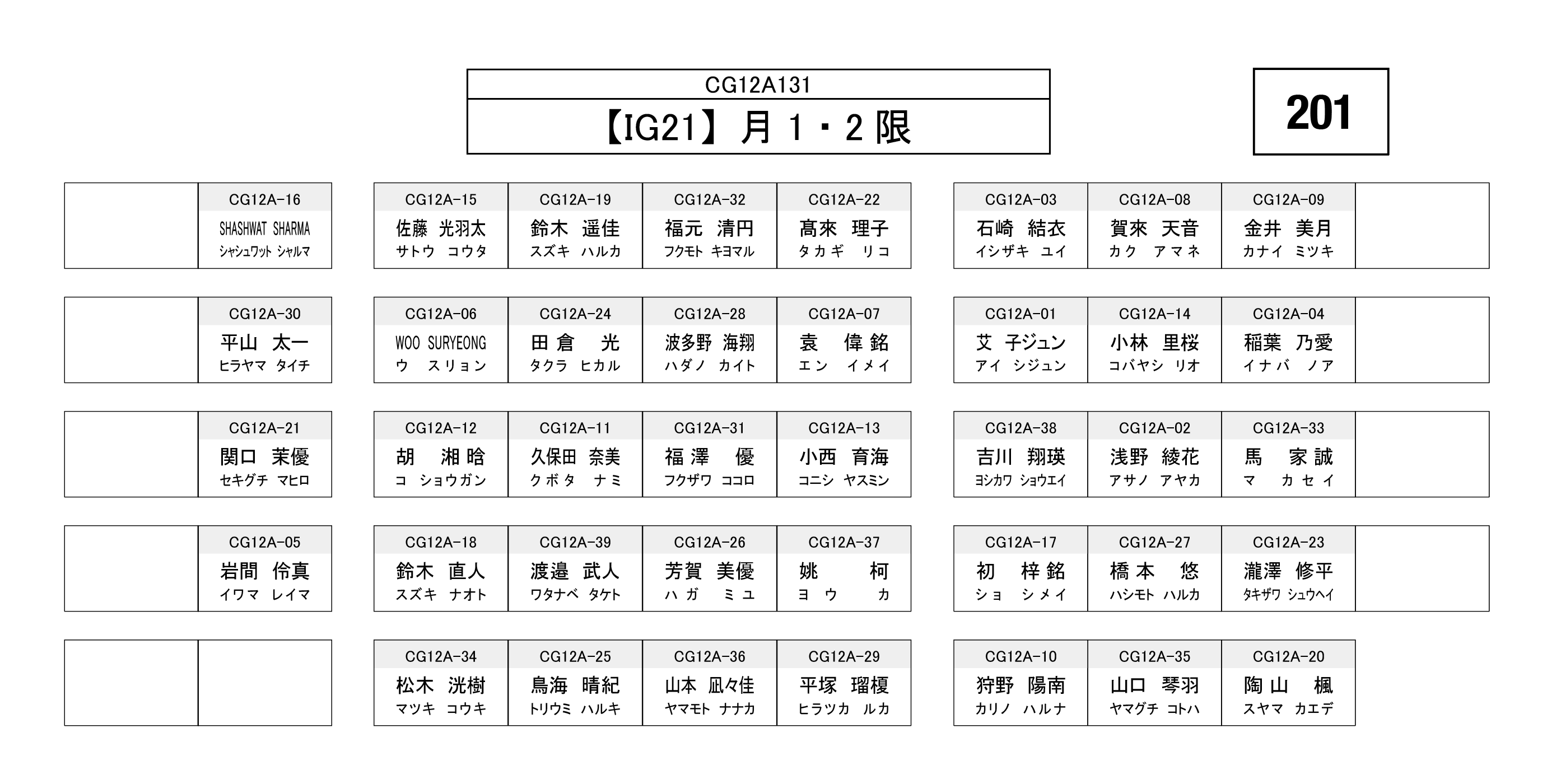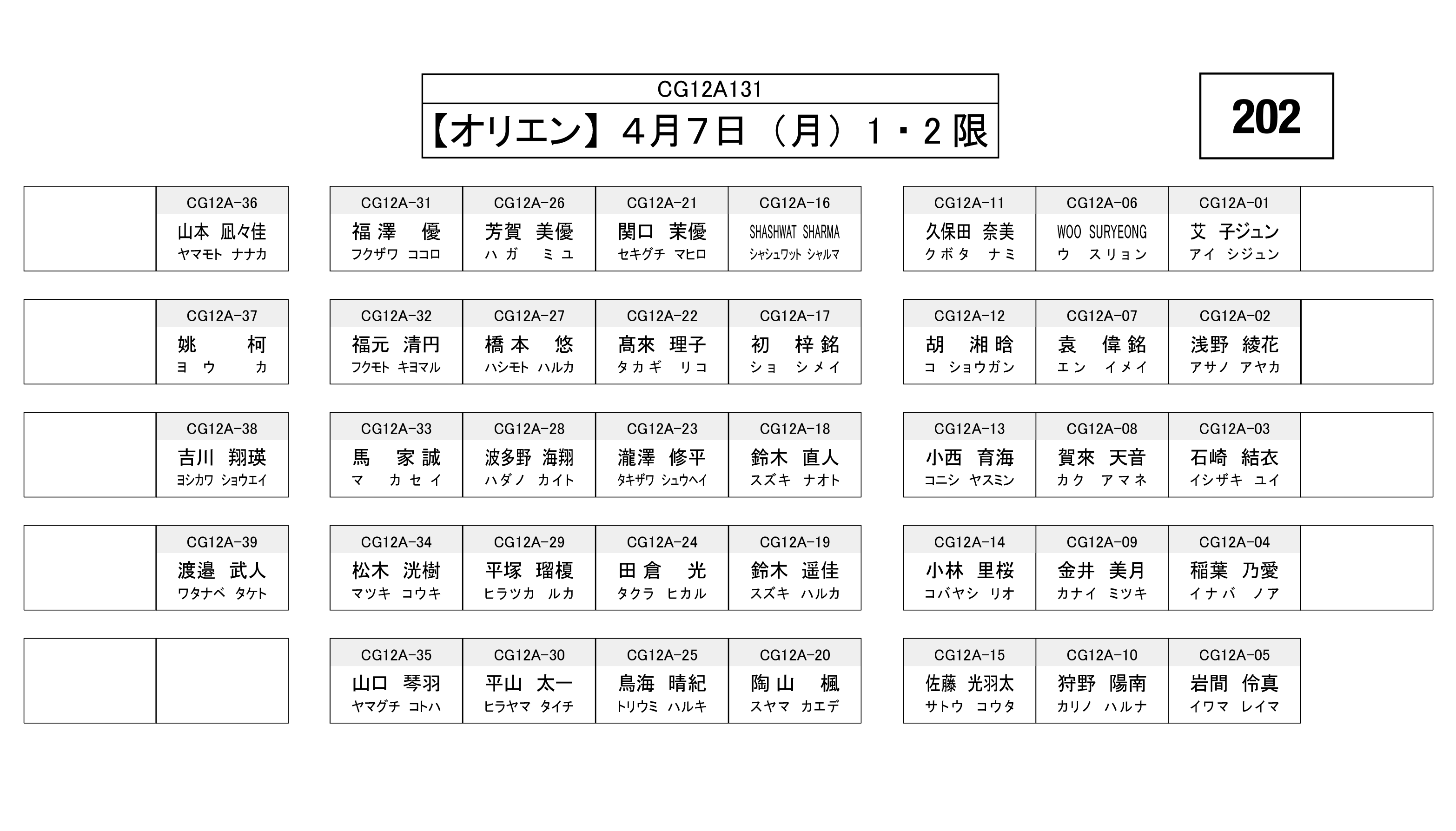 | 曜日 日付 | 月 1 | 火 2 | 水 3 | 木 4 | 金 5 | 土 6 | 日 7 |