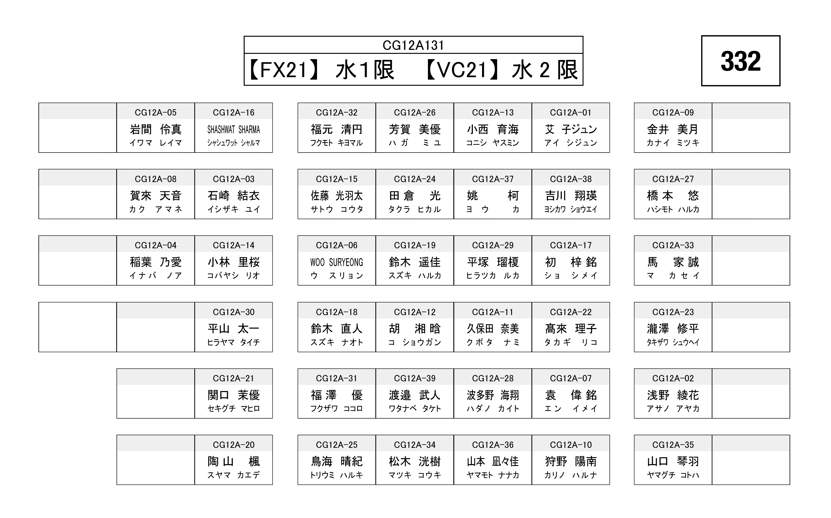 | 曜日 日付 | 月 12 | 火 13 | 水 14 | 木 15 | 金 16 | 土 17 | 日 18 |